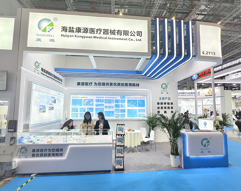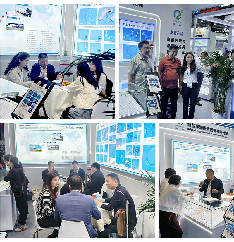 Located in Hall 6.2, Haiyan Kangyuan Medical Instrument Co., Ltd. presented its full range of products with impressive presence. On the first day of the exhibition, Kangyuan Medical’s highlighted innovative offerings—including the button gastrostomy tube and endotracheal tube with temperature sensor—captured the attention of many visitors. What drew even greater interest from professional attendees, however, was Kangyuan Medical’s comprehensive product portfolio and robust market credentials.
